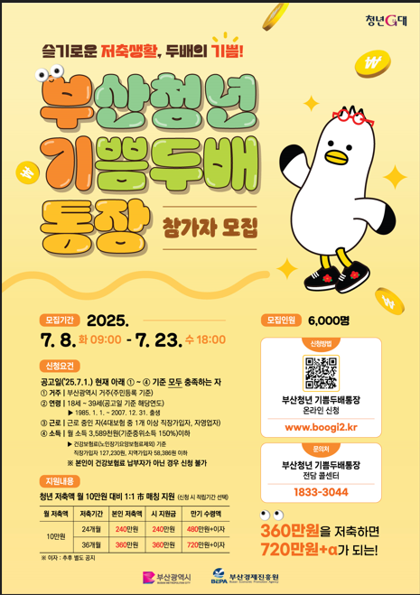2025년에도 어김없이 부산청년기쁨통장(기쁨두배통장)이 돌아왔습니다.